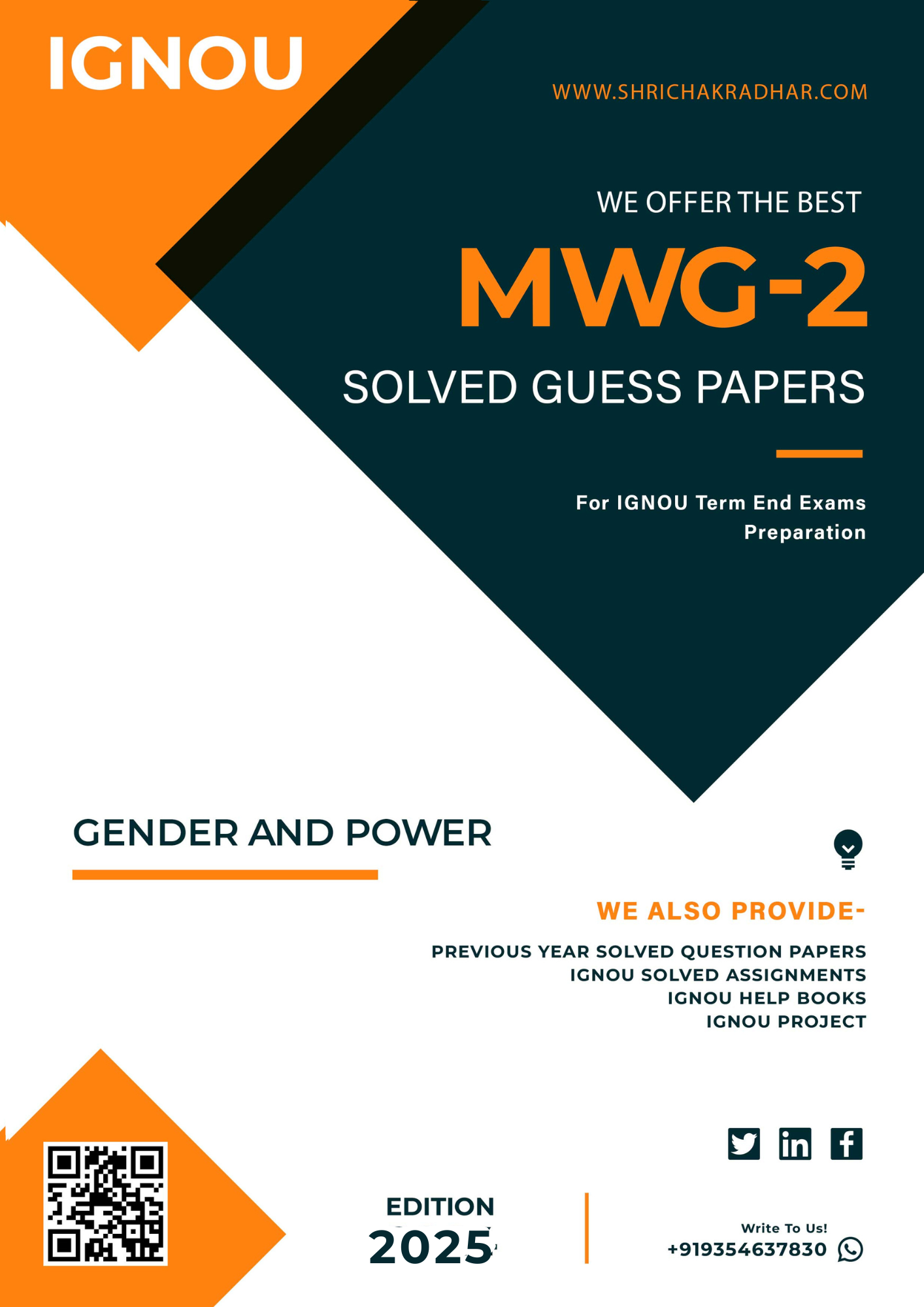 Are you looking for best quality IGNOU Solved Guess Papers Pdf Booklet & IGNOU Important Question Answers? We created IGNOU MWG 2 Solved Guess Papers with fully solved answers for your convenience. Here is the perfect IGNOU MWG 2 Important Question Answers in a descriptive way for those students who wish to pass out their upcoming IGNOU Term End Examination. These Solved Guess Papers solutions are time saving for the students because they will get each solutions of the expected questions shall be asked in the IGNOU MWG 2 question paper. Answers are well explained and language is easy for better understanding. Above all, buy this IGNOU MWG 2 Solved Guess Papers Solutions Gender and Power from our Guides/Reference Book and get best help for your coming examination.