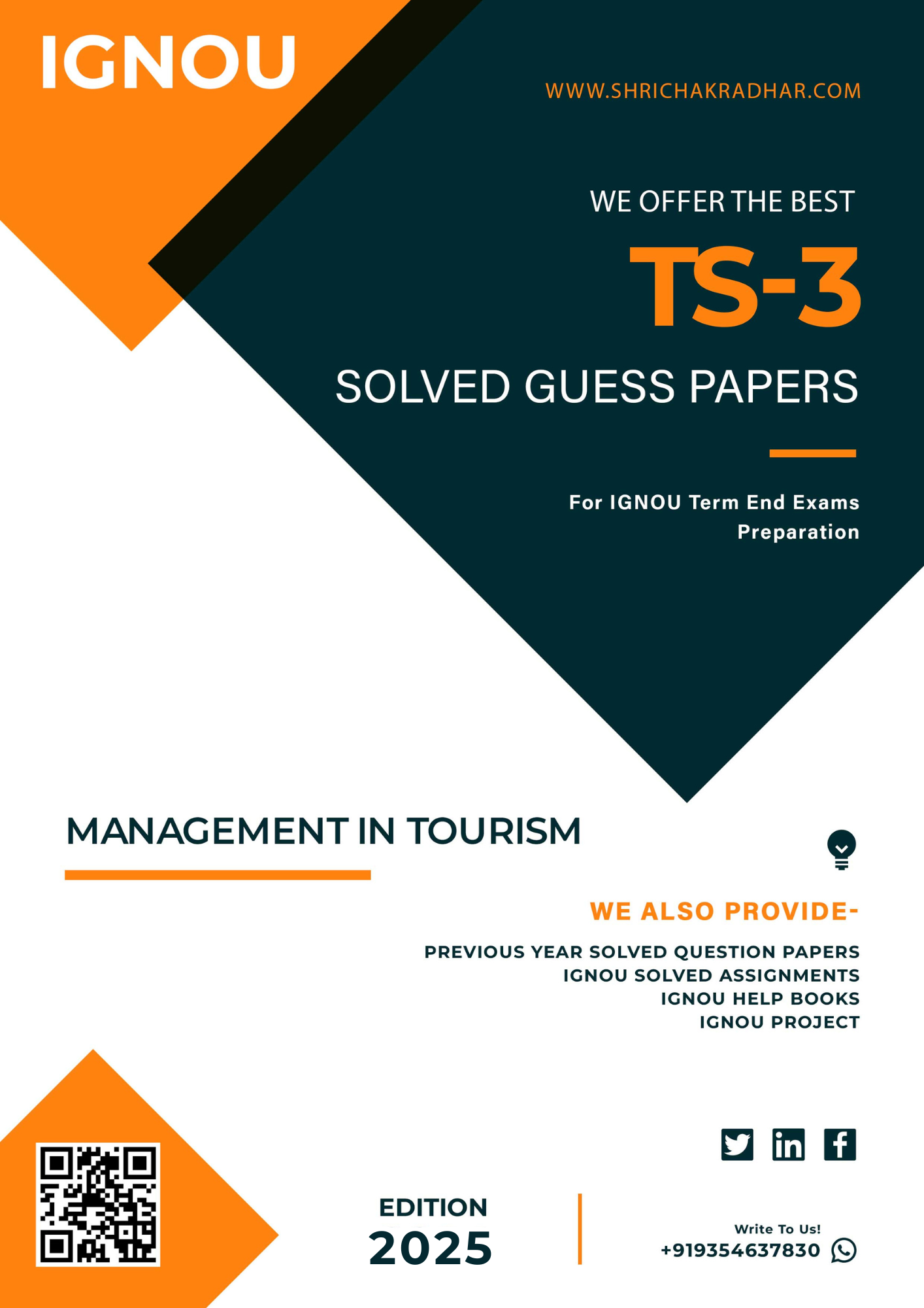 Are you looking for best quality IGNOU Solved Guess Papers Pdf Booklet & IGNOU Important Question Answers? We created IGNOU TS 3 Solved Guess Papers with fully solved answers for your convenience. Here is the perfect IGNOU TS 3 Important Question Answers in a descriptive way for those students who wish to pass out their upcoming IGNOU Term End Examination. These Solved Guess Papers solutions are time saving for the students because they will get each solutions of the expected questions shall be asked in the IGNOU TS 3 question paper. Answers are well explained and language is easy for better understanding. Above all, buy this IGNOU TS 3 Solved Guess Papers Solutions Management in Tourism from our Guides/Reference Book and get best help for your coming examination.